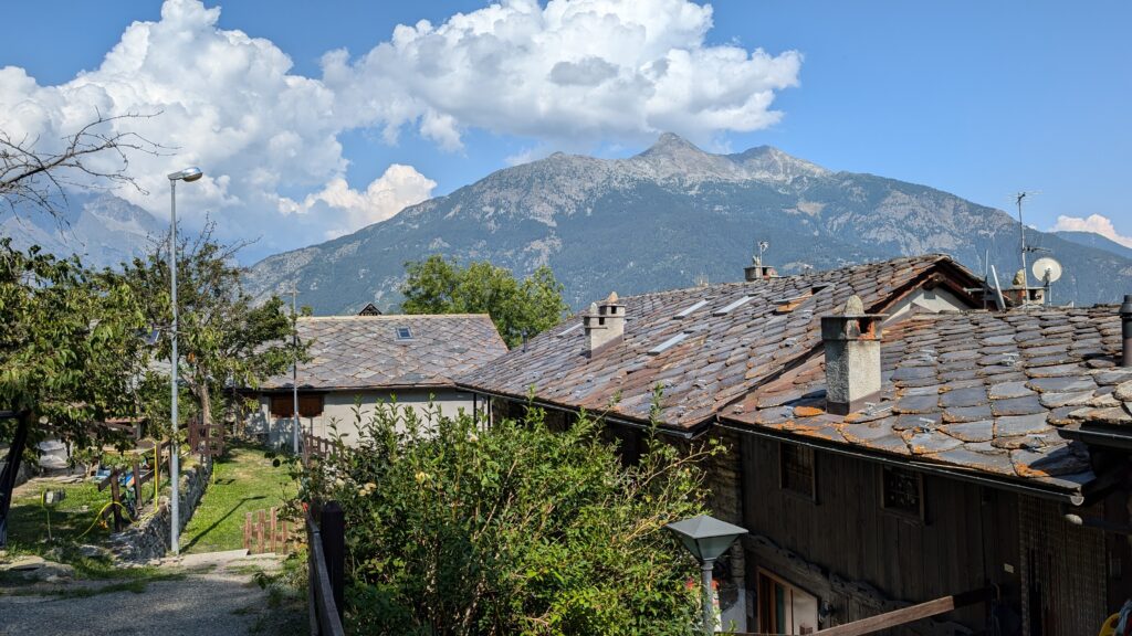 Dom nie jest wolnostojący, co dobrze widać na zdjęciach i jest otoczony z każdej strony sąsiedztwem. Jest to typowe zabudowanie w Valle d’Aosta na tej wysokości (budynek, który w XVIII i XIX w pełnił funkcje rolnicze odrestaurowano w 2004 roku i wyremontowano dzieląc na mniejsze mieszkania).