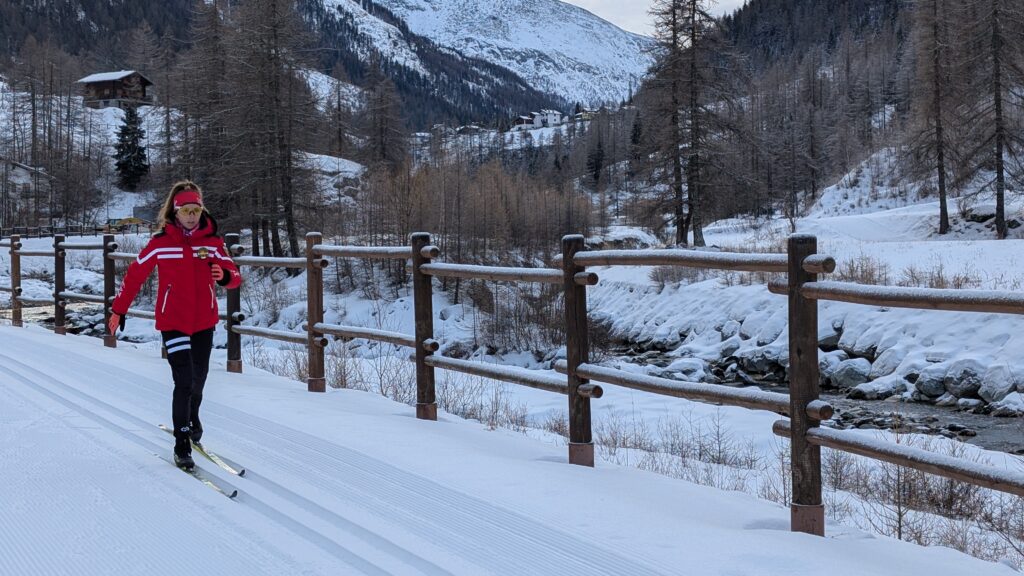 Jak wspaniale szusować na biegówkach w ciszy i spokoju, w miejscu otoczonym górami. Chyba właśnie ten spokój doceniam najbardziej w nartach biegowych. W Valle d’Aosta jest naprawdę sporo ośrodków nart biegowych ze świetnie przygotowanymi trasami, szkółkami narciarskimi i przygotowanymi instruktorami narciarstwa i nie są nigdy przepełnione. Nawet jeśli jest się takim nartowo biegowym laikiem jak ja to można spokojnie odnaleźć się na trasie.