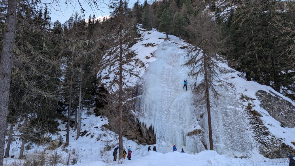 Wracając z Valsavarenche po drodze spotkaliśmy alpinistów, którzy wspinali się na zamarźnięte wodospady. Robi to wrażenie!