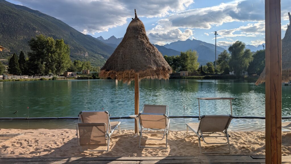 My wybraliśmy stolik tuż przy brzegu jeziora, polecam być już o 19:00, bo później czas oczekiwania na dania może wynosić nawet 30 minut. Choć w takim miejscu i na urlopie… kto by liczył minuty?