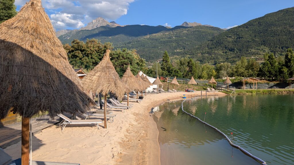 W jeziorku pływają spore ryby, co może niektórych zniechęcić do wypływania na środek. Woda jest chłodna, ale w upalne dni w Valle d’Aosta bardzo przyjemna. Jezioro jest głębokie (ok. 10 m na środku), a przy brzegu wydzielono strefę dla dzieci, bo głębokość szybko się zwiększa.
