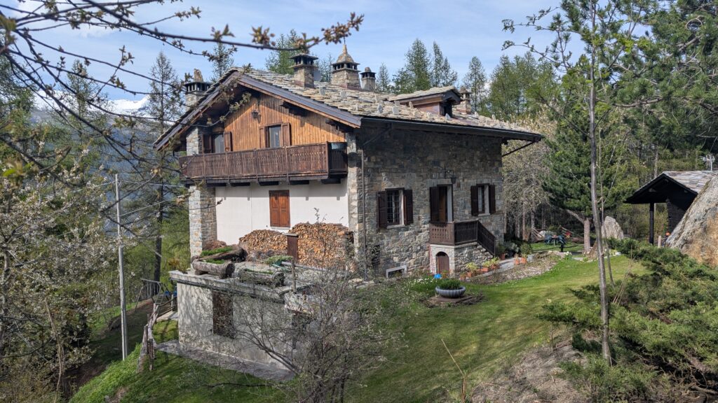 Na początku swoich pobytów w Dolinie Aosty polski papież nocował w jednym z okolicznych domów (leży na początku drogi do Villa Pontificia i jest na poniższym zdjęciu), dopiero po kilku latach wybudowano Villę, która mogła gościć również personel papieża. Warto wspomnieć, że kolejny papież, Benedykt XVI, rozbudował ją dodatkowo i jedną z sal zaadaptował na kapliczkę, w której modlił się codziennie. Jan Paweł II takiej kapliczki nie miał, bo jak mi opowiadano codziennie wychodził do mieszkańców i modlił się z nimi.