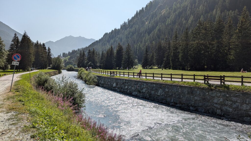 Ostatni odcinek wiedzie płaskim, przyjemnym szlakiem wzdłuż potoku Évançon. Ławki, śpiew ptaków, szelest wody to idealna okazja, by podsumować ten dzień w głowie. Po około 30 minutach jesteśmy znów w Champoluc.