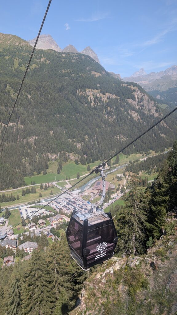 W Alpe Ciarcerio warto się zatrzymać na chwilę, napić się kawy z widokiem na Monte Rosa. Potem zjeżdżamy do Frachey funikulą, podziwiając widoki, które co chwilę proszą się o zdjęcie. Sporo ich zrobiłam, na blogu publikuję tylko część, żeby nie popsuć wam niespodzianki jak sami będziecie zwiedzać 😊.